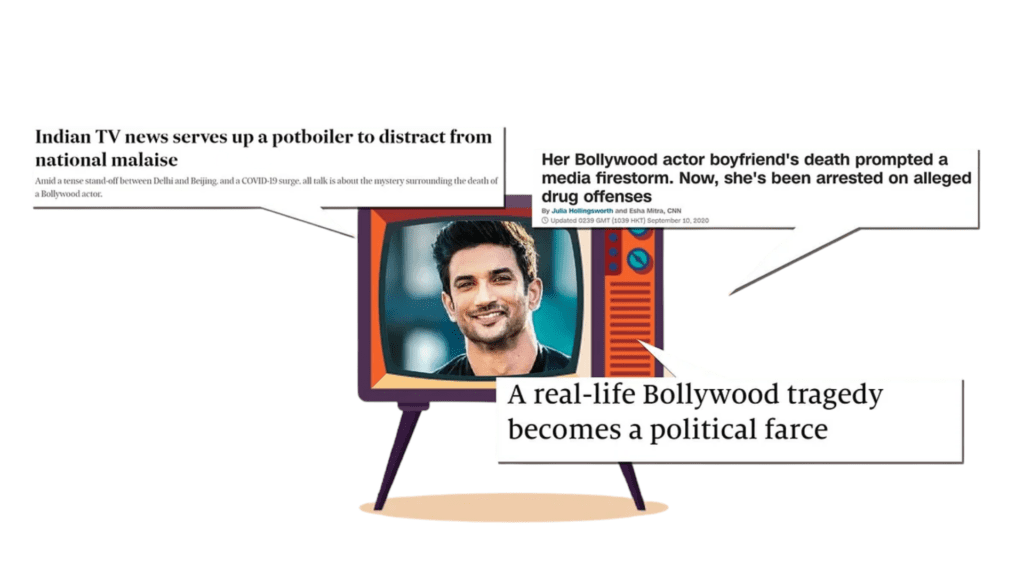 Converging the grounds of discussion to the “Sushant Singh Rajput” case. The entire nation was curious about the case and wanted to know the truth, this being a high profile mysterious case assured media long super primetime hours and our talented media shot a sixer on the ball and made things spicy, tangy, and interesting. It won’t be wrong to say there was a Bollywood movie going on almost every news channel, and the movie had no checkers of sensor board because this time it was directed by the media and the media is the power and has full rights to throw allegations.